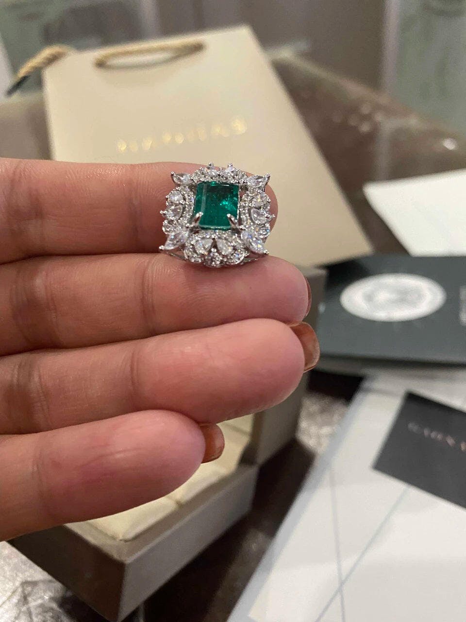 GAONAS Emerald ring Cubic Zirconia S925 Silver Artificial woman unisex fashion luxurious jewelry Green rich creative gifts 2025 NEW 10103JG
